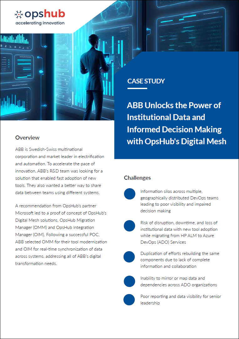 In this case study, you’ll see how ABB migrated from HP ALM to Azure DevOps with zero downtime, while enabling real-time data synchronization across multiple DevOps teams. By preserving full history and traceability, ABB improved leadership visibility, reduced duplicate effort, and accelerated decision-making across a global organization.