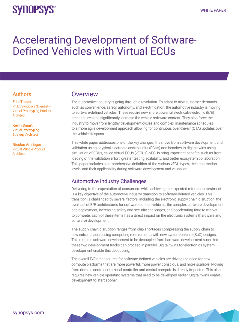 The automotive industry is going through a revolution. To adapt to new customer demands such as convenience, safety, autonomy, and electrification, the automotive industry is moving to software-defined vehicles. These require new, more powerful electrical/electronic (E/E) architectures and significantly increase the vehicle software content. They also force the industry to move from lengthy development cycles and complex maintenance schedules to a more agile development approach allowing for continuous over-the-air (OTA) updates over the vehicle lifespans.