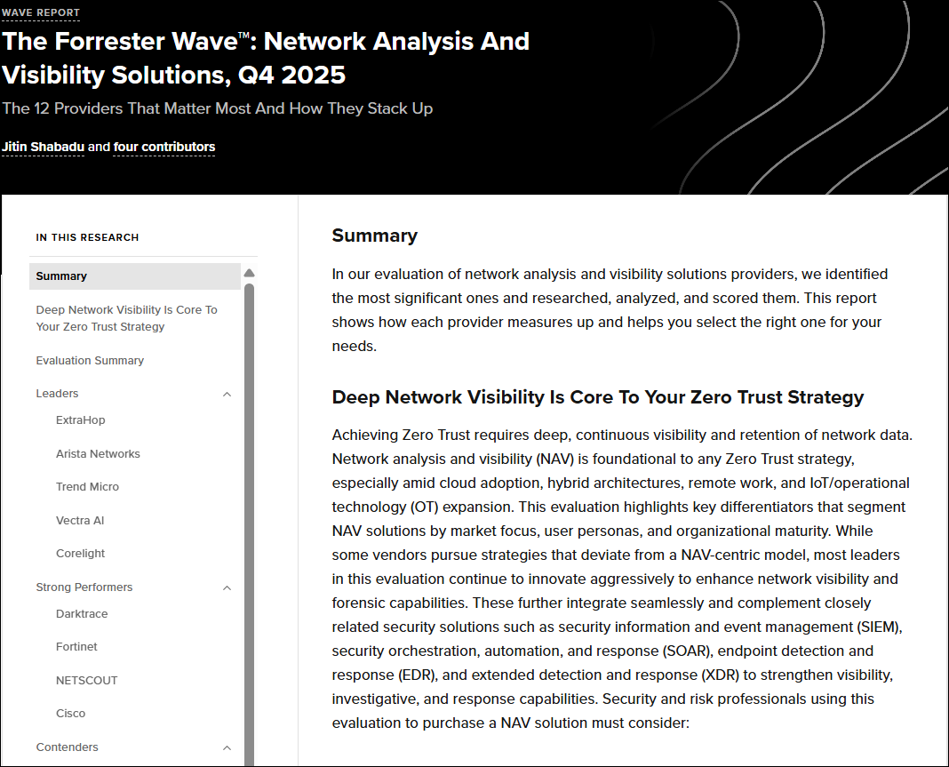 Read Forrester’s evaluation of Network Analysis and Visibility solutions