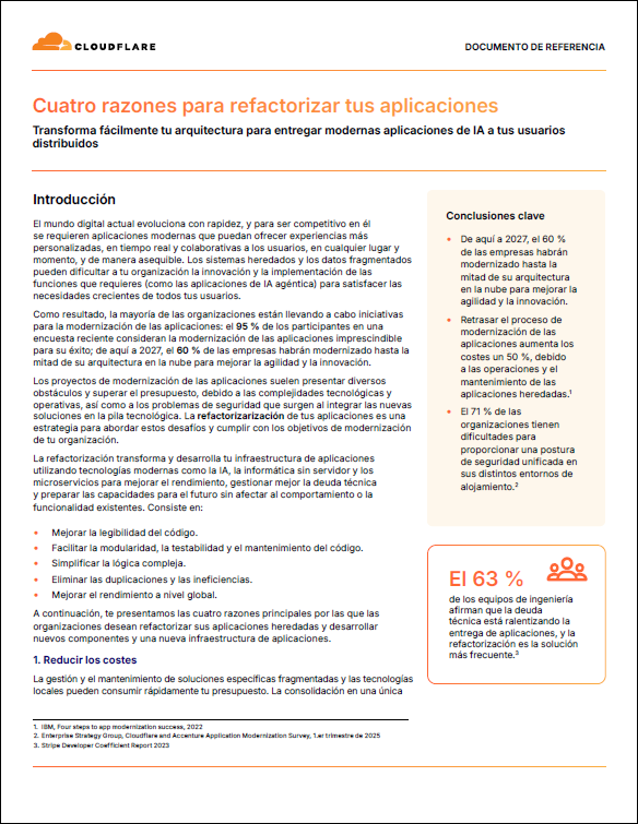 Este documento de referencia analiza cuatro razones para la refactorización de tus aplicaciones y cómo una única plataforma basada en la nube puede ayudarte, e incluye: